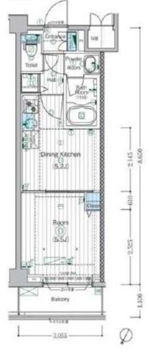 | 間取り | 1DK | 専有面積 | 26.4m2 |