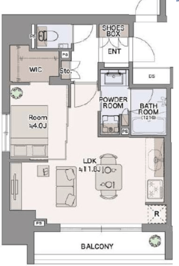 | 間取り | 1LDK+WIC | 面積 | 40.63m2 |