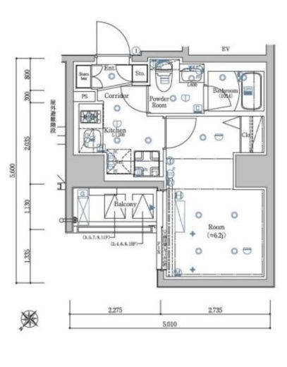| 間取り | 1K | 専有面積 | 22.55m2 |