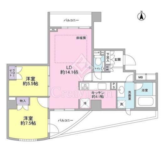| 間取り | 2LDK | 専有面積 | 68.97m2 |