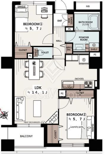 | 間取り | 2LDK | 専有面積 | 61.06m2 |
