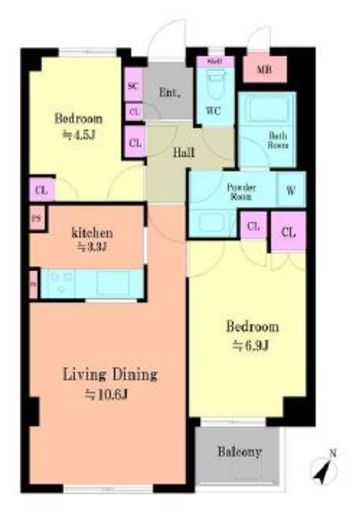 | 間取り | 2LDK | 専有面積 | 57.74m2 |