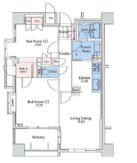 | 間取り | 2LDK+WIC | 専有面積 | 60.57m2 |