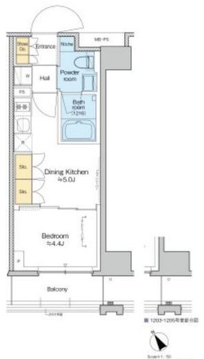| 間取り | 1DK | 専有面積 | 25.22m2 |