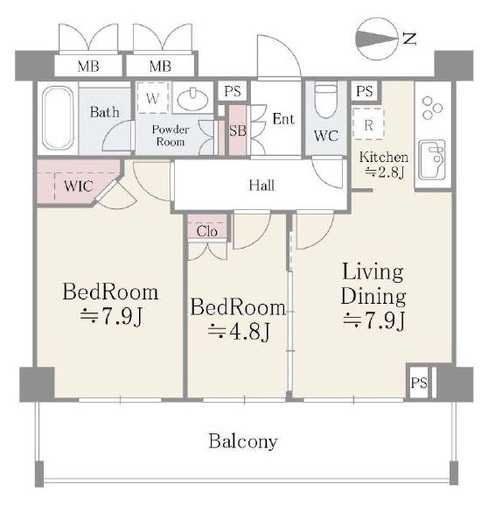 | 間取り | 2LDK+WIC | 専有面積 | 55.25m2 |