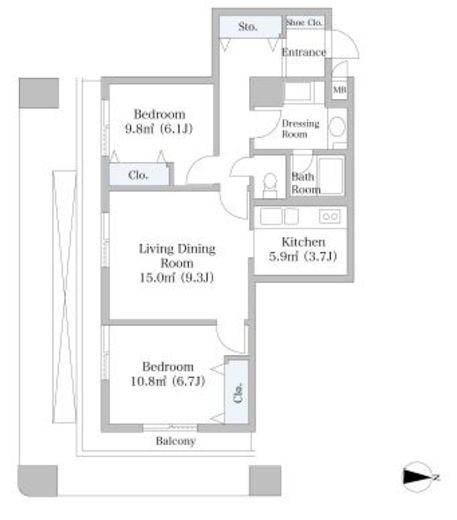 | 間取り | 2LDK | 専有面積 | 64.39m2 |