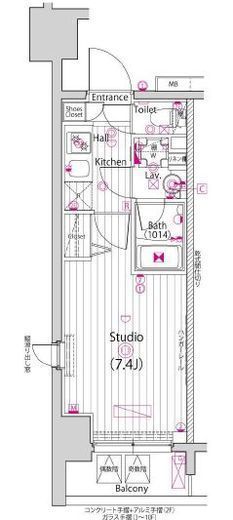 | 間取り | 1K | 専有面積 | 21.68m2 |