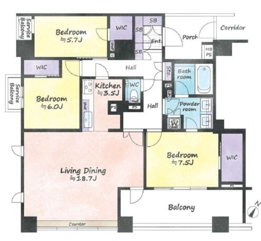 | 間取り | 3LDK+WIC | 専有面積 | 101.72m2 |