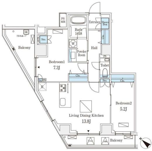 | 間取り | 2LDK | 専有面積 | 62.81m2 |