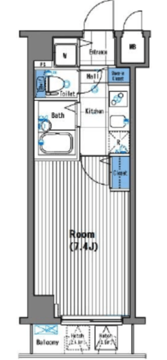 | 間取り | 1K | 専有面積 | 21.94m2 |