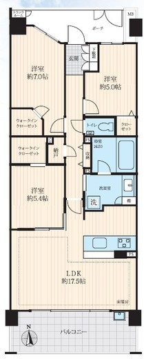 | 方角 | 南 | バルコニー面積 | 12.4m2 |