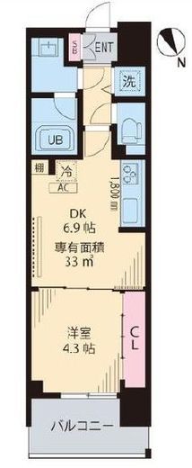 | 間取り | 1DK | 専有面積 | 33.24m2 |