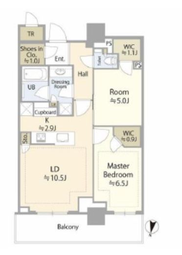 | 間取り | 2LDK+WIC+SIC | 専有面積 | 61.6m2 |