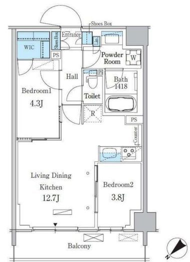 | 間取り | 2LDK+WIC | 専有面積 | 50.16m2 |