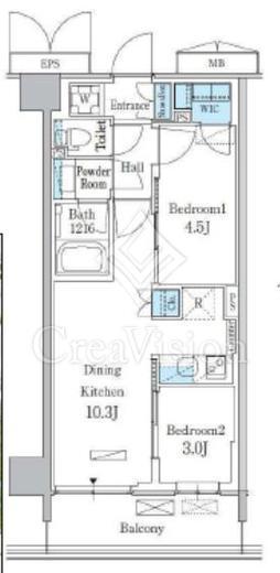 | 間取り | 2LDK+WIC | 専有面積 | 41.36m2 |