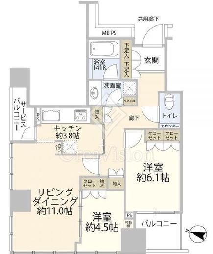 | 間取り | 2LDK | 専有面積 | 64.86m2 |
