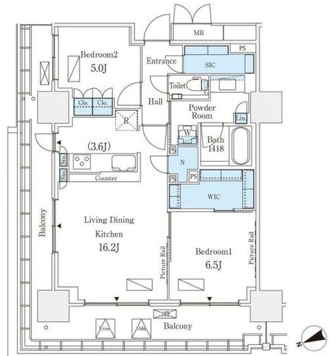 間取り | 2LDK+WIC+SIC | 専有面積 | 68.28m2 |