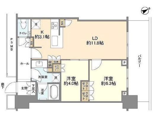 | 間取り | 2LDK | 専有面積 | 58.23m2 |