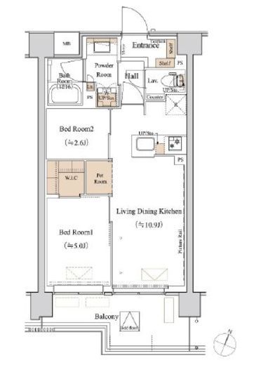 | 間取り | 2LDK+WIC | 専有面積 | 44.39m2 |