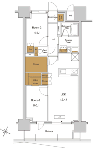 | 間取り | 2LDK+WIC | 専有面積 | 55.03m2 |