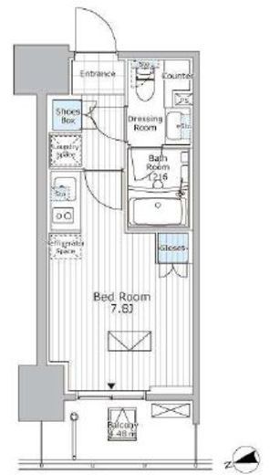 | 間取り | 1R | 専有面積 | 22.72m2 |