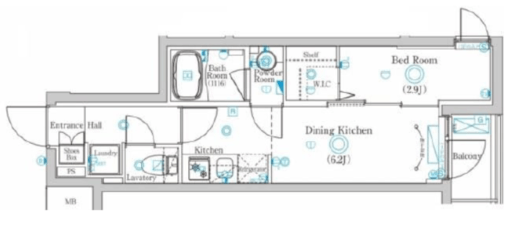 | 間取り | 1DK | 専有面積 | 25.46m2 |