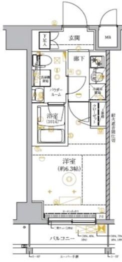 | 間取り | 1K | 専有面積 | 21.28m2 |
