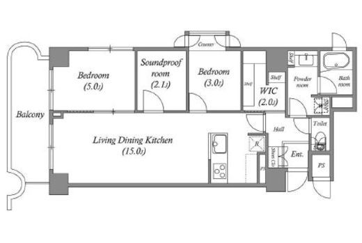 間取り | 2SLDK+WIC | 専有面積 | 62.99m2 |