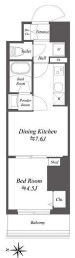 | 間取り | 1DK | 専有面積 | 30.72m2 |