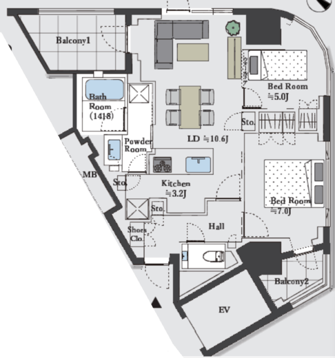 | 間取り | 2LDK | 専有面積 | 61.11m2 |
