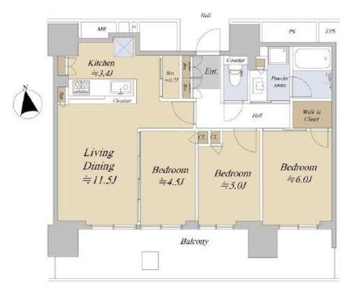 間取り | 3LDK+WIC | 専有面積 | 69.13m2 |