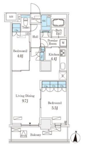 | 間取り | 2LDK | 専有面積 | 55.26m2 |