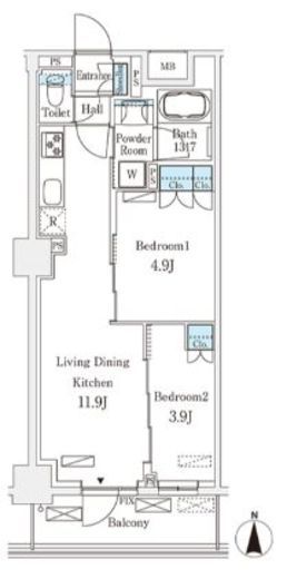 | 間取り | 2LDK | 専有面積 | 45.95m2 |