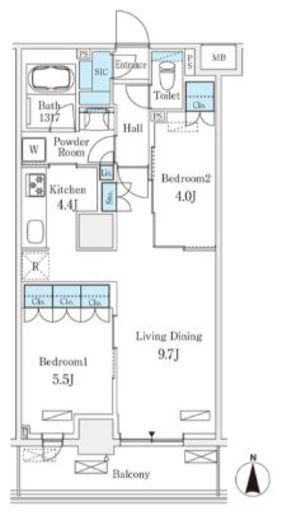 | 間取り | 2LDK | 専有面積 | 55.26m2 |