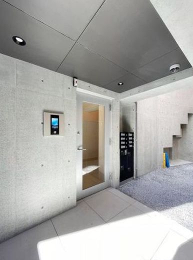 物件は地上4階建て総戸数8戸。コンクリート打ちっぱなしのシックな外観に、共用部には防犯カメラ、プライバシーを守る共用部内廊下設計、モニター付きオートロック、防犯性に優れたディンプルキーなど低層のコンパクトな物件ながら防犯面の安心してお住まいいただける仕様となっております。