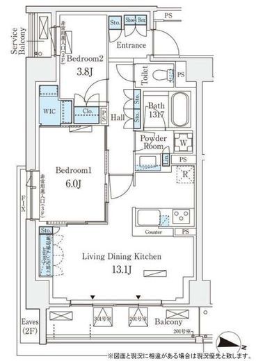 間取り | 2LDK+WIC | 専有面積 | 59.1m2 |
