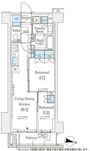 間取り | 2LDK+SIC | 専有面積 | 44.1m2 |