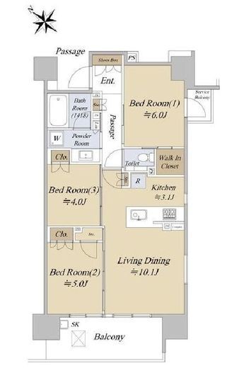 | 間取り | 3LDK+WIC | 専有面積 | 63.39m2 |