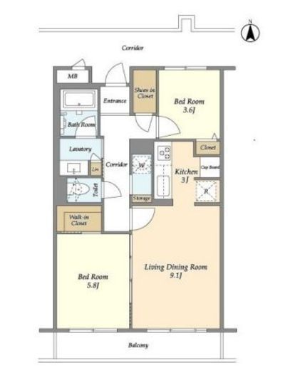| 間取り | 2LDK | 専有面積 | 56.33m2 |