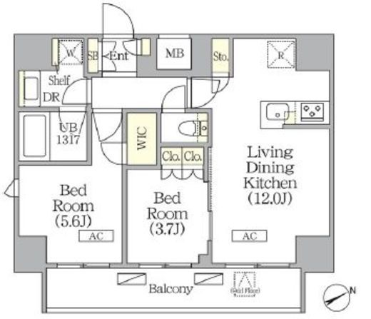 | 間取り | 2LDK+WIC | 専有面積 | 50.34m2 |