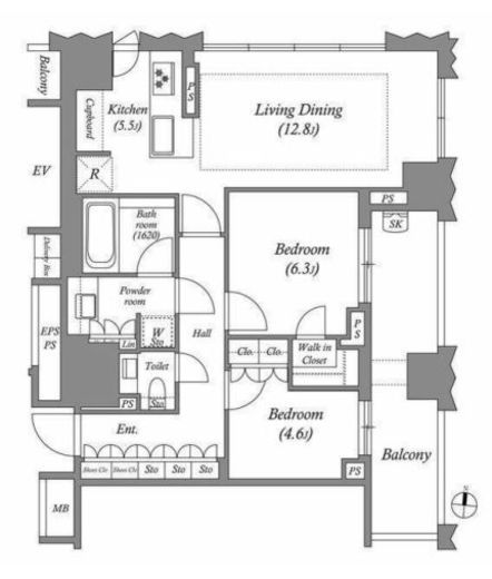 間取り | 2LDK | 専有面積 | 72.96m2 |