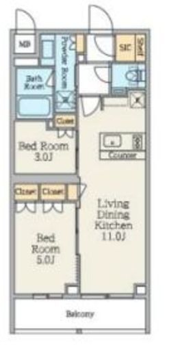 | 間取り | 1LDK+SIC | 専有面積 | 45.06m2 |