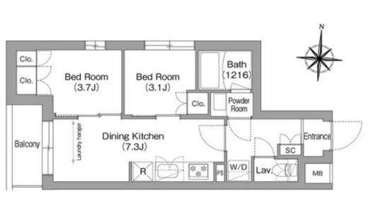 | 間取り | 2DK | 専有面積 | 35.71m2 |