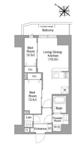 | 間取り | 2LDK | 専有面積 | 39.8m2 |