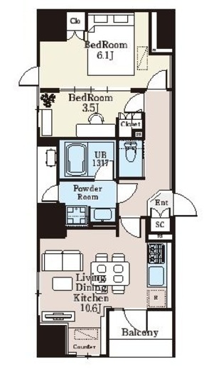| 間取り | 2LDK | 専有面積 | 50m2 |