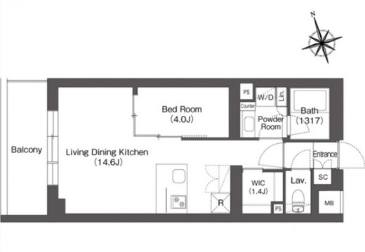 | 間取り | 1LDK+WIC | 専有面積 | 43.46m2 |