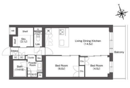 | 間取り | 2LDK | 専有面積 | 62.04m2 |
