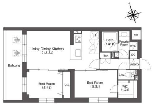| 間取り | 2LDK+WIC | 専有面積 | 58.82m2 |