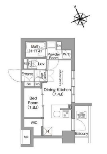 | 間取り | 1DK+WIC | 専有面積 | 25.53m2 |