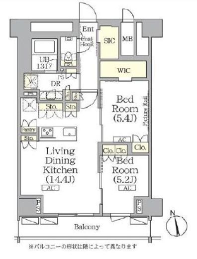 | 間取り | 2LDK+WIC+SIC | 専有面積 | 63.12m2 |